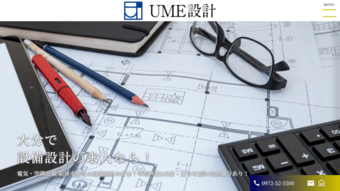 株式会社UME設計は大分県佐伯市宇目重岡3047-5を拠点に、代表・佐藤寿行氏のもとで設備設計と電気設備の二職種で業務・採用を展開している。大分県内の官公庁施設・教育機関・医療機関を主な対象として、地域密着の体制で公共施設の設備設計に長く携わってきた。電話は0972-52-5500、営業時間は8:30〜17:30で受け付けている。