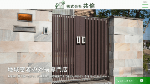 問い合わせから訪問、現地調査、お見積り——ここまでの全工程を無料で対応している外構業者が、福岡市西区姪の浜に拠点を置く株式会社共倫だ。駐車場・フェンス・門扉・庭の施工から、墓石の建立・クリーニング・補修・墓じまいまで、自社一貫体制で対応する。土木施工管理技士の有資格者が施工を担い、複数業者を介さないため品質管理がシンプルになる。実績は300件を超えており、対応案件の幅広さが継続的な依頼につながっている。
