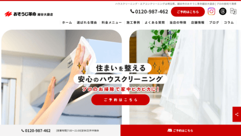 おそうじ革命はテレビ・ニュース・雑誌など各種メディアで紹介されてきたブランドで、越谷大袋店もそのノウハウと品質基準を引き継いでいる。水回り・エアコン・床・ベランダと対応メニューは広く、住まいのまとめて清掃したいという需要に一括で応える体制が整っている。