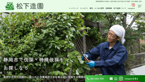 住宅地での大木処理は、切り倒す方向を誤れば隣家に被害が及ぶ。電線に絡んだ枝は、扱いを間違えれば停電事故を招く。こうした緊張感のある現場に18年向き合ってきたのが、松下造園の代表・松下有作氏だ。造園技能士1級の資格を持ち、ロープワークを軸にした特殊伐採で、重機なしでは対処できないとされる現場にも対応する。静岡市駿河区を拠点に、県内全域へ訪問して作業を行っている。